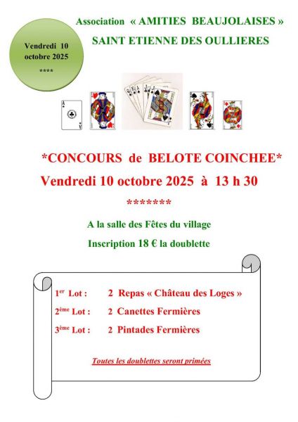 organisé par l'association "Amitiés Beaujolaises" le vendredi 10 octobre 2025 à 13h30 à la salle des fêtes